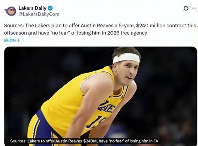 - 曝湖人计划在今年夏天 为里夫斯提供一份5年2.4亿美元的合同